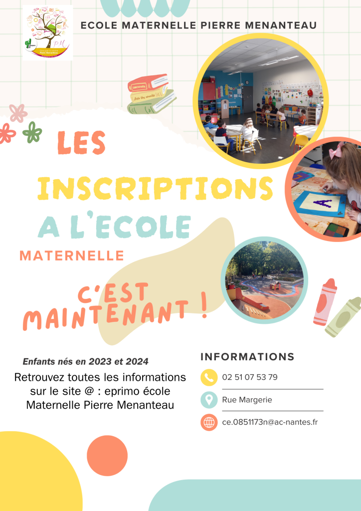 La directrice, Louise MARQUIS, vous reçoit sur rendez-vous. Vous pourrez ainsi visiter l’école maternelle et réaliser l’inscription de votre enfant. (Prévoir carnet de santé et livret de famille)