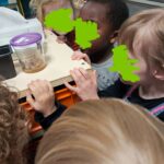 Nous avons donc installé des chenilles dans la classe, nous apprenons de nouveaux mots (chrysalide, cocon, chenille…), nous les écrivons, nous lisons des histoires, nous réalisons des productions artistiques, nous assistons à des spectacles, nous apprenons à dessiner des insectes pas à pas… Nous avons aussi organisé une semaine banalisée spéciale « petites bêtes » pendant laquelle nous avons chassé des insectes, construit un abri, découvert les coccinelles…