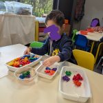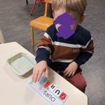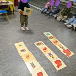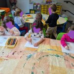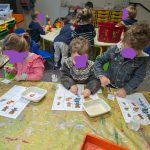 Lors de cette troisième période, nous nous sommes intéressés aux contes et autres albums avec des animaux. « Boucle d’Or et les trois ours », « La petite poule rousse », « La moufle », « Roule Galette »… sont autant d’histoires qui permettent de travailler les arts visuels et le graphisme, l’écriture et la recomposition de mots, les ordres de grandeurs (petit/ moyen/ grand), le découpage et le collage, le langage oral avec des comptines, le repérage dans l’espace…