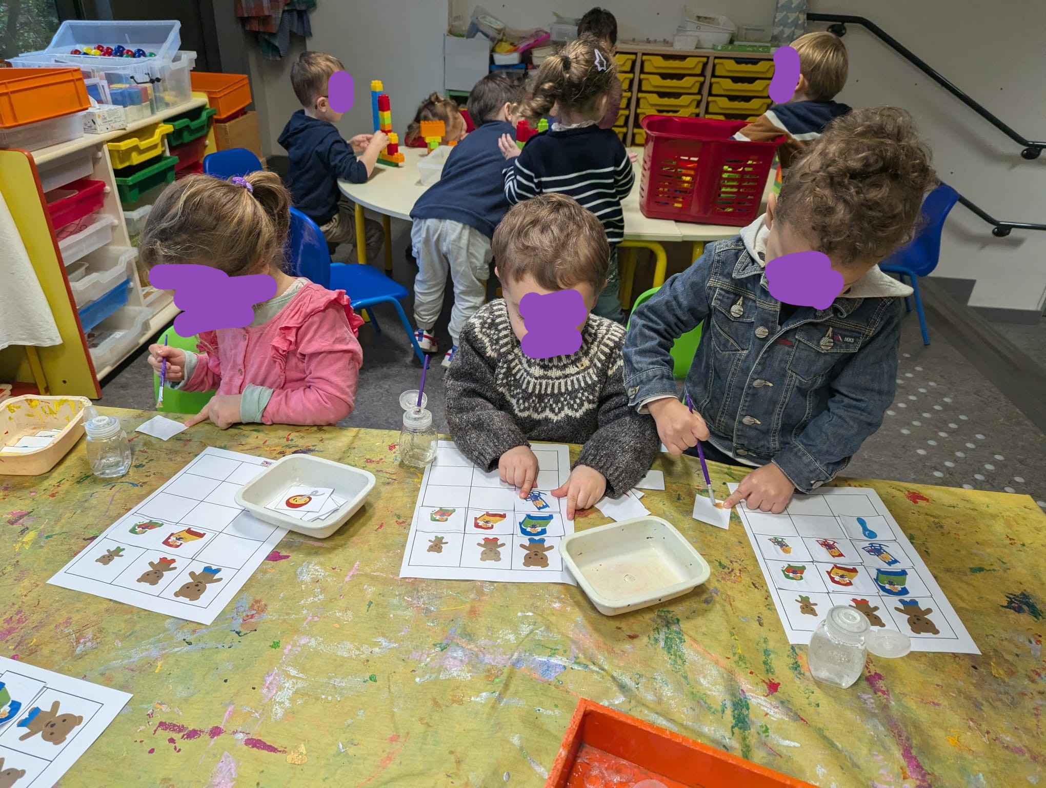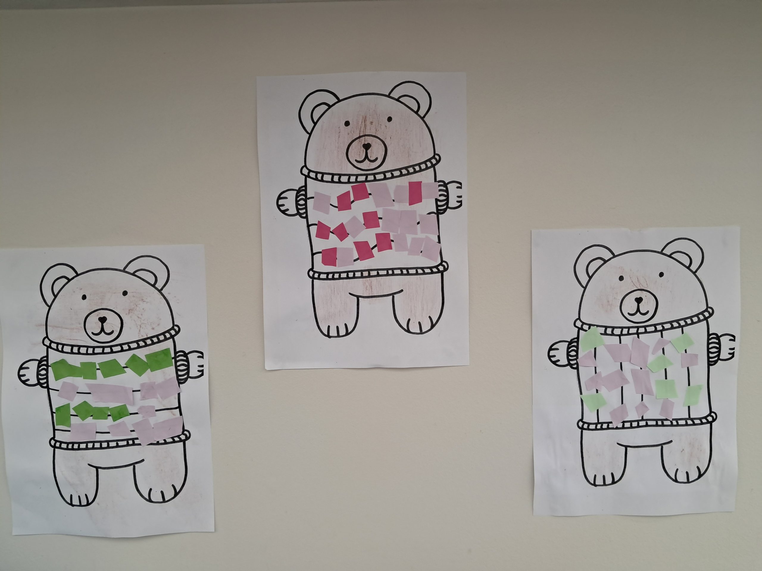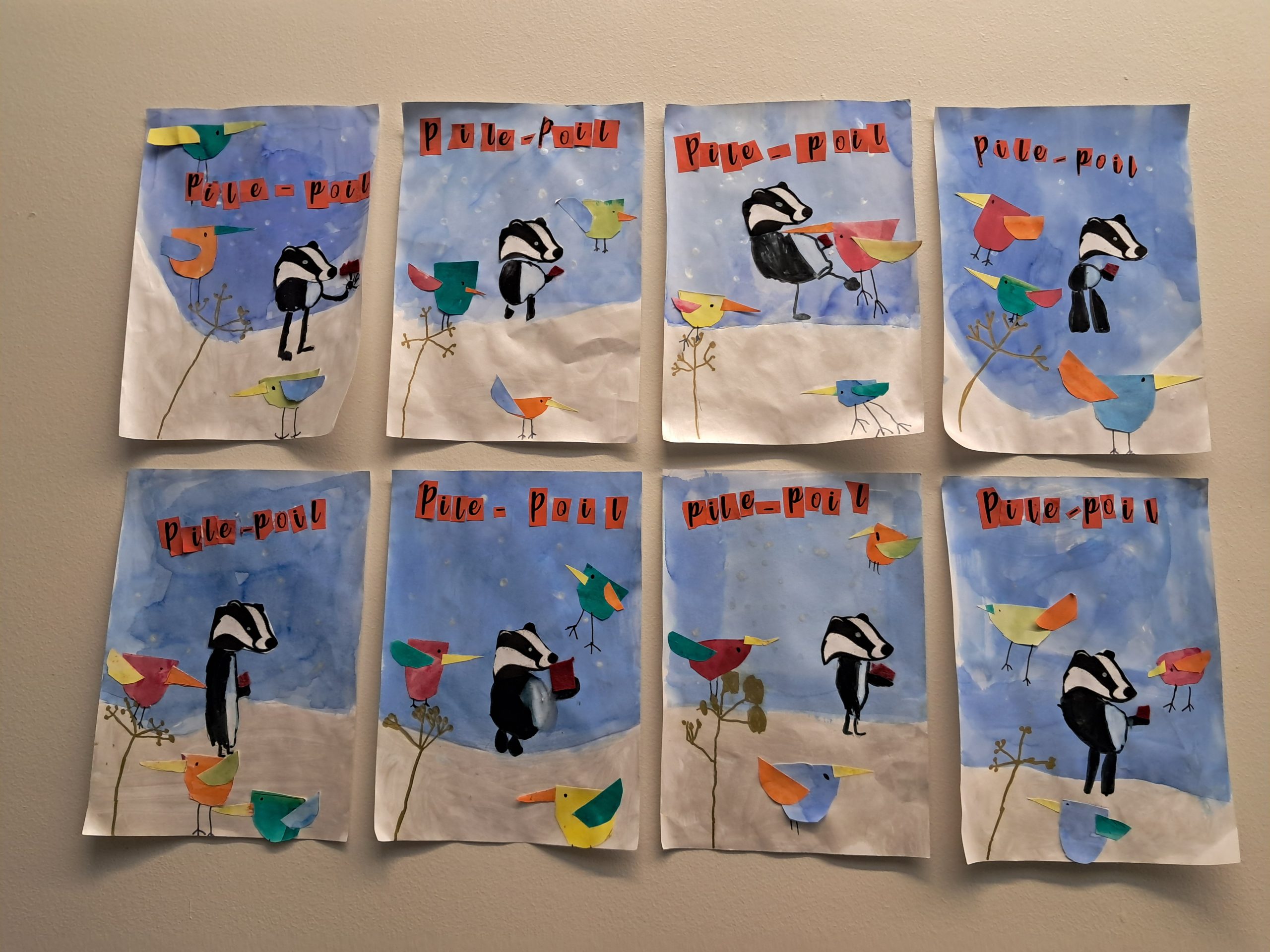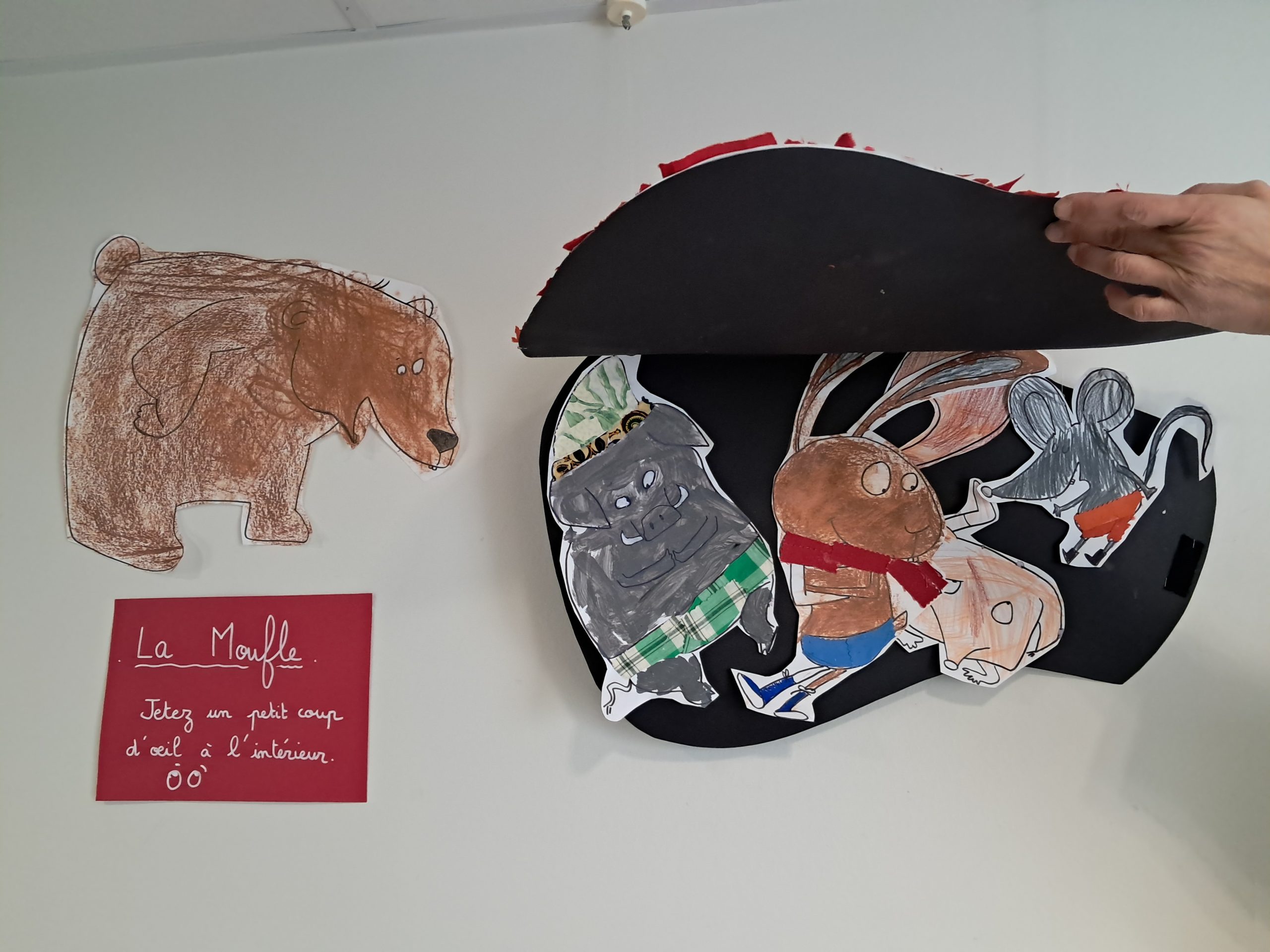 Lors de cette troisième période, nous nous sommes intéressés aux contes et autres albums avec des animaux. « Boucle d’Or et les trois ours », « La petite poule rousse », « La moufle », « Roule Galette »… sont autant d’histoires qui permettent de travailler les arts visuels et le graphisme, l’écriture et la recomposition de mots, les ordres de grandeurs (petit/ moyen/ grand), le découpage et le collage, le langage oral avec des comptines, le repérage dans l’espace…