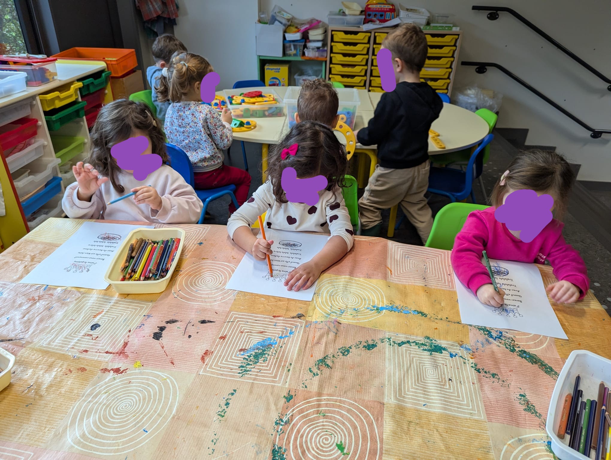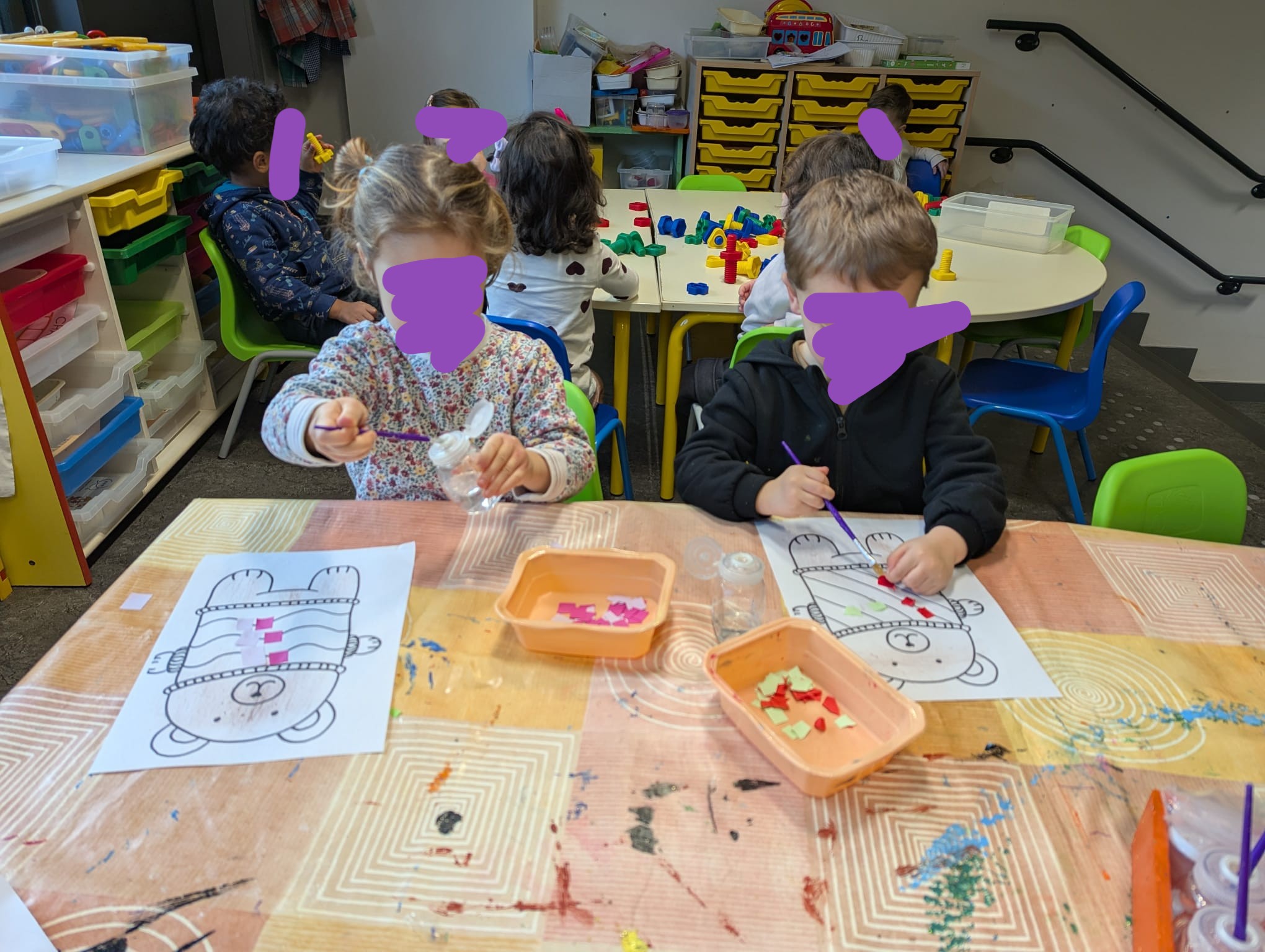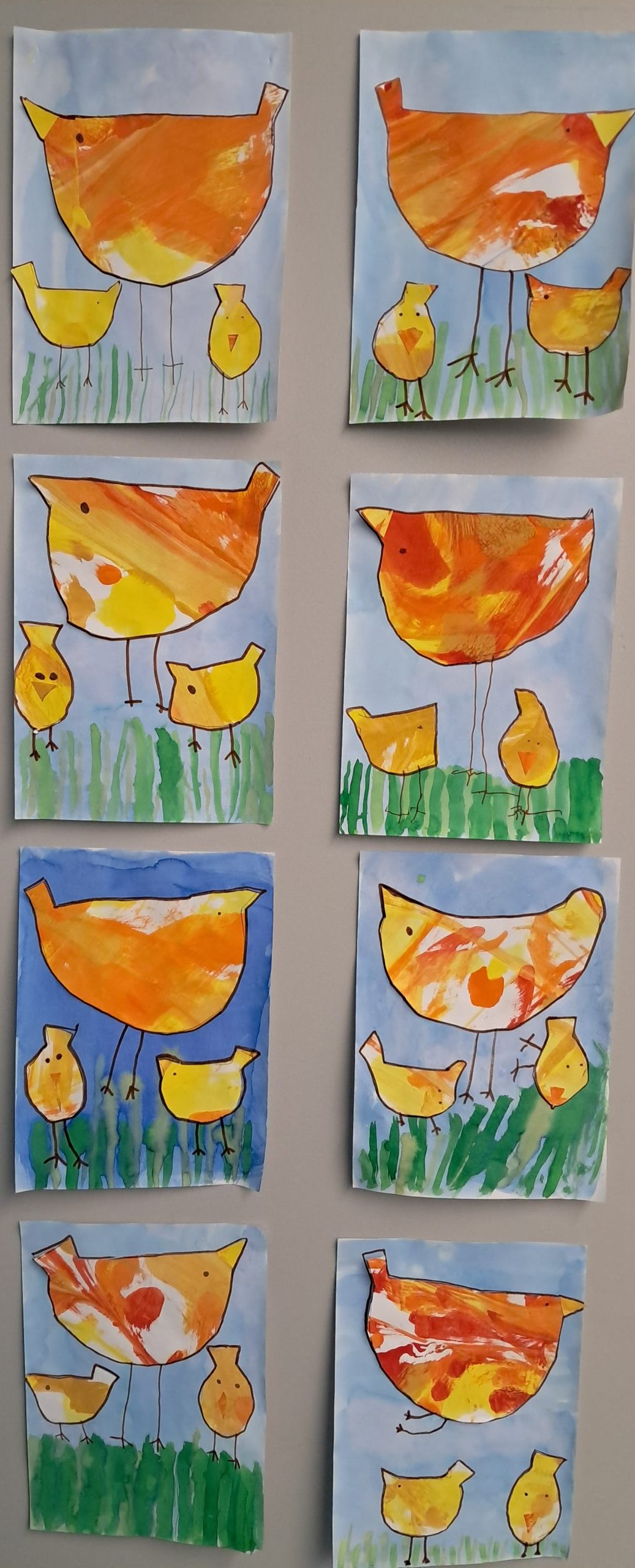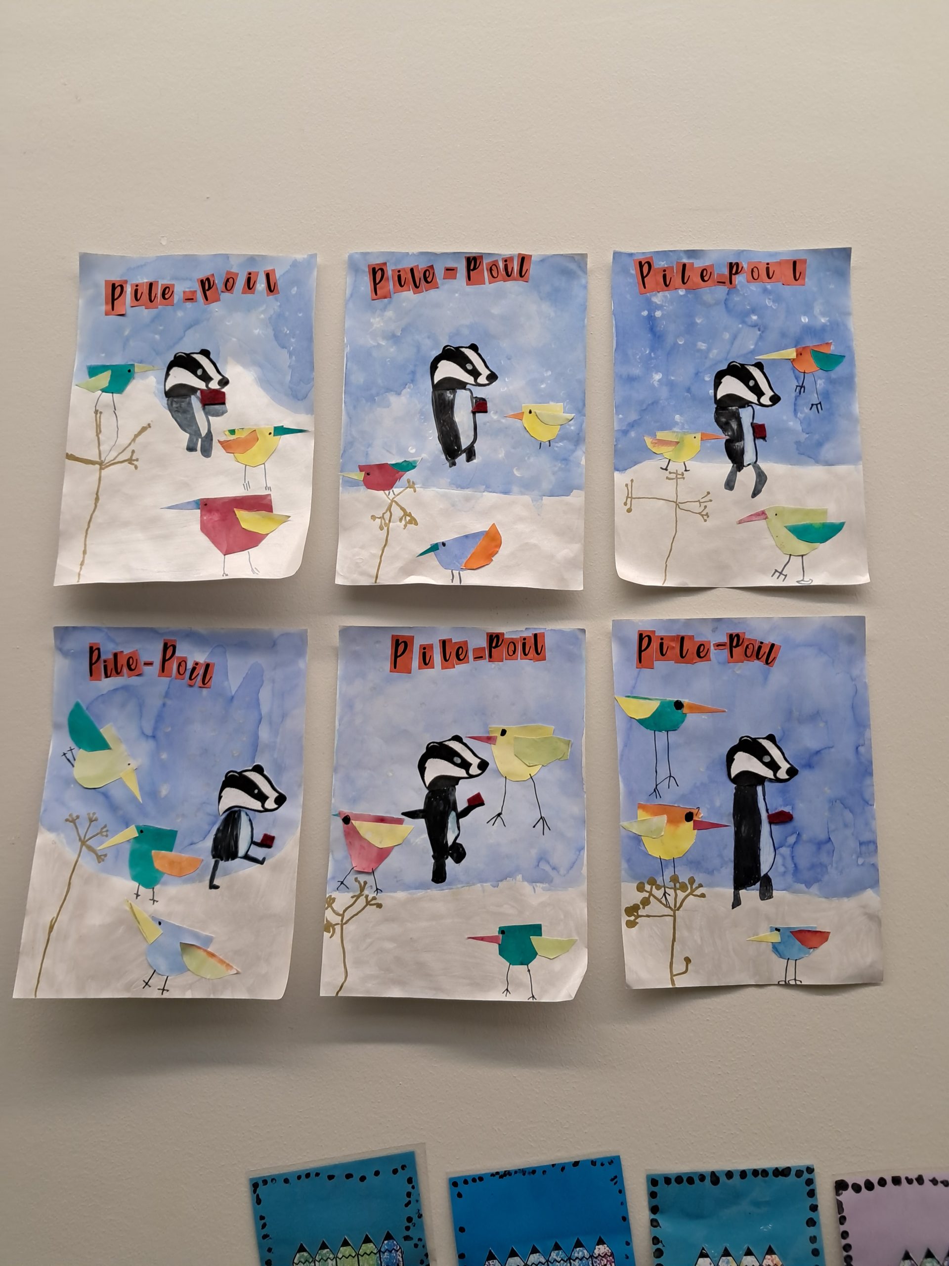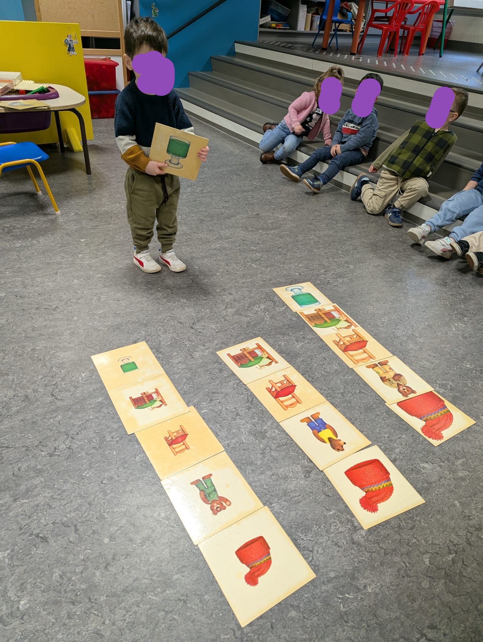 Lors de cette troisième période, nous nous sommes intéressés aux contes et autres albums avec des animaux. « Boucle d’Or et les trois ours », « La petite poule rousse », « La moufle », « Roule Galette »… sont autant d’histoires qui permettent de travailler les arts visuels et le graphisme, l’écriture et la recomposition de mots, les ordres de grandeurs (petit/ moyen/ grand), le découpage et le collage, le langage oral avec des comptines, le repérage dans l’espace…