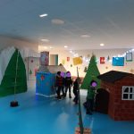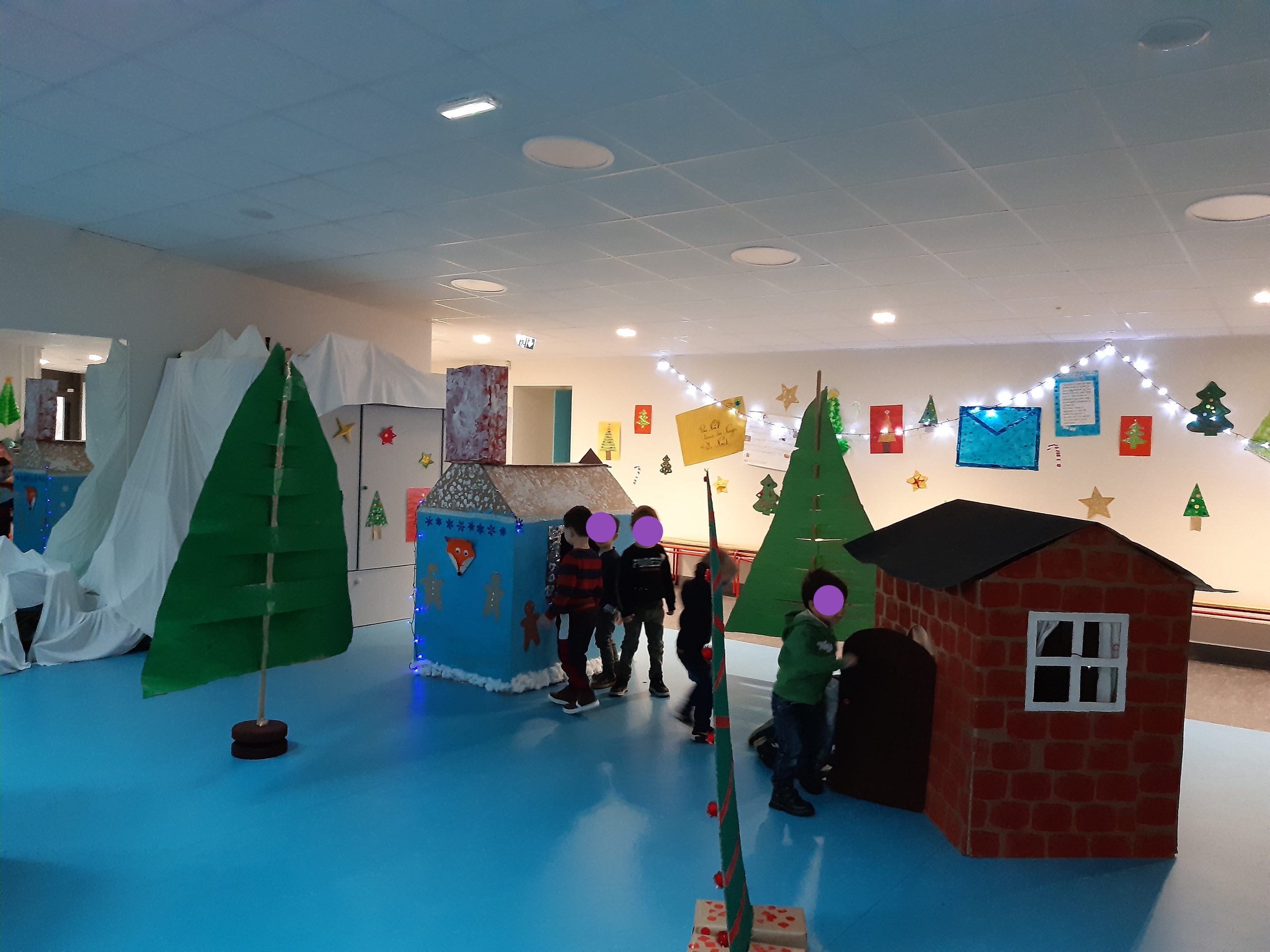 Afin de décorer notre hall pour Noël, toutes les classes ont participé à la réalisation de décors sur les thèmes des contes traditionnels. Après avoir lu les contes de Jack et le haricot magique, Boucle d’or et les trois ours, Le petit bonhomme de pain d’épice, Les trois petits cochons et Le petit chaperon rouge, les enfants ont construit et décoré des maisons sur ces thèmes. Bravo à tous !